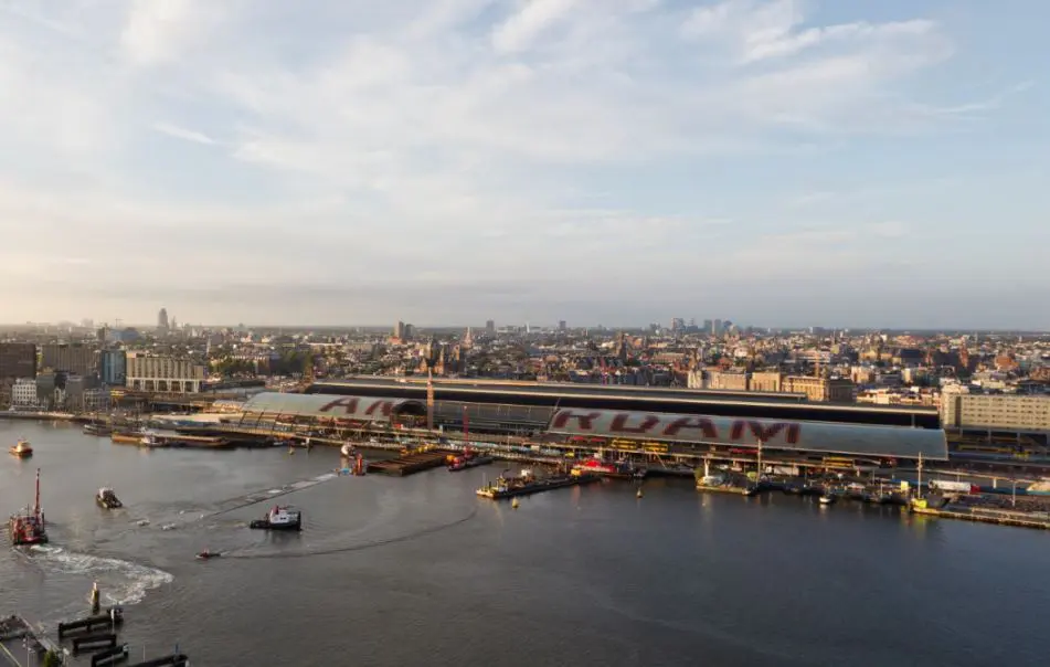 Before the tunnel could be installed, the station building and tracks were placed on a new foundation using a bespoke “table construction”. This required removing old wooden piles and replacing them with advanced support systems, including sandwich walls and vertical microtunnelling. Once complete, a trench was excavated beneath the table, and concrete tunnel elements were floated in from the IJ and sunk into position – a unique achievement in Dutch engineering.