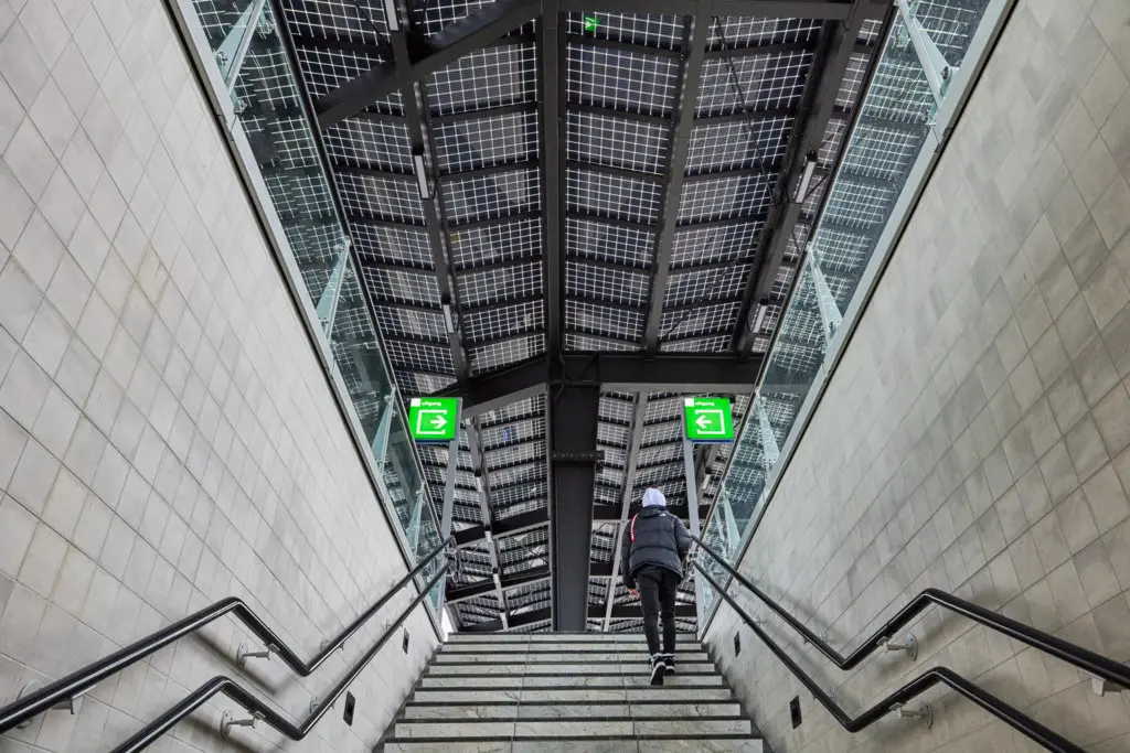 What makes the roof of Delft Campus station so special is that the roof itself consists of solar panels. This construction is highly different from laying panels on a roof. The 810 panels have been completely optimised for generating energy. The energy yield will be 200 megawatt per year on average, which is equal to the use of 70 households per year. This is more than enough to compensate the annual energy consumption of the station systems such as elevators, led lighting, public address system, passenger information, ticket checks, etc.